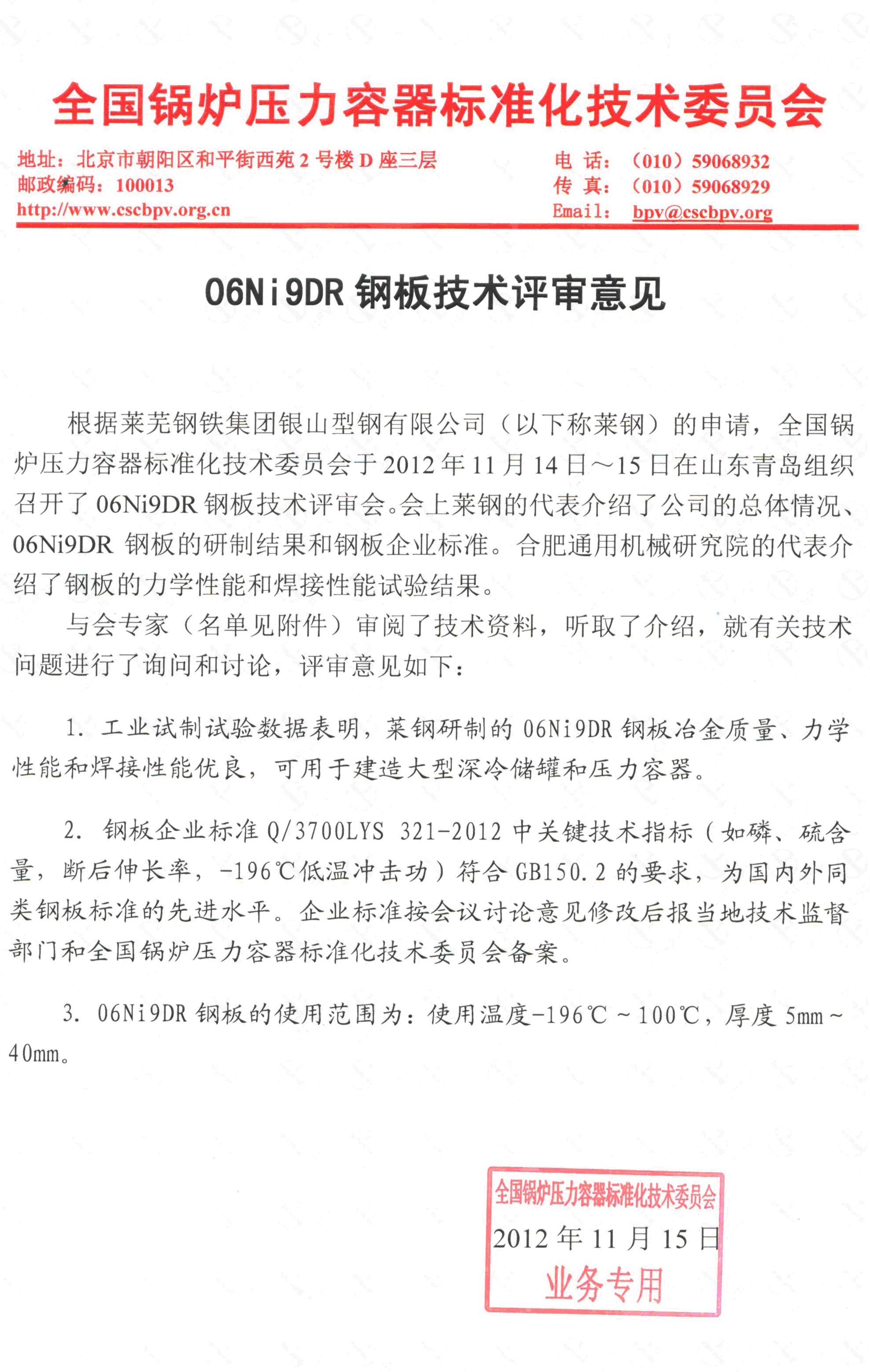 鋼技術評審意見及評審證書